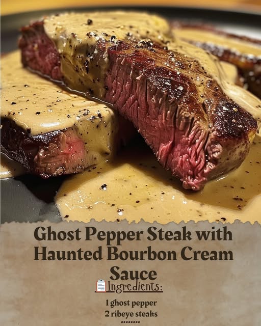 Start by finely chopping the ghost pepper, being sure to wear gloves to protect your skin from the heat. Rub the steaks with salt, pepper, and the chopped ghost pepper on both sides. Heat olive oil in a skillet over high heat and sear the steaks for 3-4 minutes on each side for medium-rare doneness. Remove the steaks from the skillet and let them rest. In the same skillet, deglaze with bourbon, scraping up any browned bits. Add in the heavy cream and butter, stirring until the sauce thickens slightly. Slice the steaks and serve with the haunted bourbon cream sauce drizzled on top. Enjoy the fiery and flavorful Ghost Pepper Steak with Haunted Bourbon Cream Sauce!